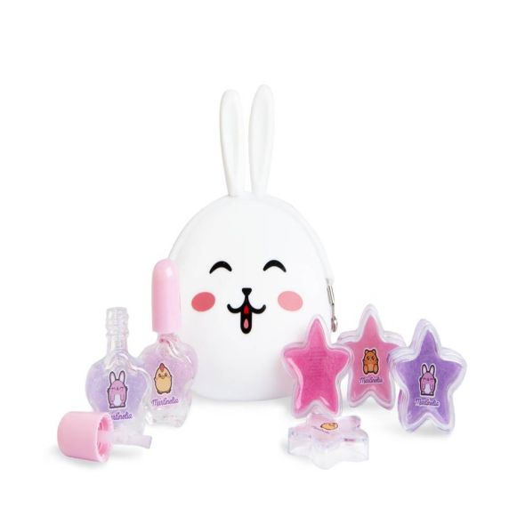 Cine poate rezista unui iepuras dragut? Acest set include 3 luciuri de buze cu sclipici, 2 lacuri de unghii cu sclipici si 1 poseta din silicon in forma de iepuras care va deveni noul articol de nedespartit pentru cei mici din casa. Ingrediente Lip Gloss - Ulei Mineral, Polibuten, Palmitat De Etilhexil, Acid Hidroxistearic, Fenoxietanol, Etilhexilglicerina, Bht, Parfum (Parfum), Coloranti. Oja - Apa, Alcool Polivinil, Fenoxietanol, Acid Poliacril, Silice, Bicarbonat De Sodiu, Polietilen Tereftalat, Polimmetil Metacrilat, Colornati. Martinelia este un brand care face parte din grupul Aquarius Cosmetic SL , principalul distribuitor de parfumuri si cosmetice in Spania inca din anul 1995. in ziua de astazi, brandul se gaseste in toata lumea, nu doar in Spania. Produsele brandului la Martinelia pot fi recunoscute cu usurinta datorita ambalajului unic si jucaus. in oferta brandului Martinelia veti gasi seturi de cadouri, accesorii pentru par, popularele balsamuri de buze aromate si alte accesorii care vin in ambalaje haioase. Copiii vor fi incantati de produse precum setul decorativ in forma de ursulet, peria de par unicorn sau periuta de dinti cu sirene. Martinelia ofera pentru cei mici o gama larga de produse distractive si inovatoare in toate culorile curcubeului. Seturi de machiaj, rujuri si tot felul de produse si accesorii concepute pentru a tine pasul cu ultimele tendinte. Produsele sunt sigure si prietenoase cu mediul fiind special proiectate pentru a putea fi folosite de copii.