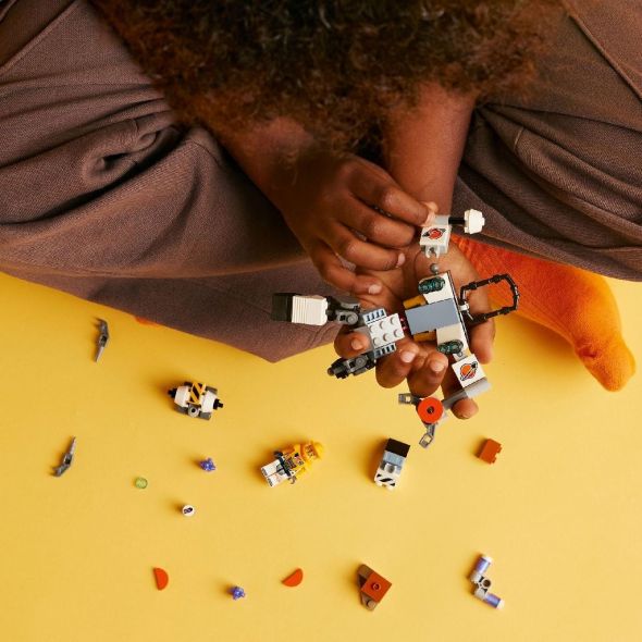 Lanseaza jocul copiilor in orbita cu setul LEGO City Robot spatial de constructii (60428) pentru baieti si fete in varsta de 6+ ani. Acest robot de jucarie futurist vine cu un ciocan si o gheara ce se poate monta pe brate, o cabina pentru o minifigurina pilot si picioare mari pentru a explora planete indepartate. Adauga robotelul de constructie, peisajul planetar, elementele de cristale energetice si minifigurina unui membru de echipaj spatial pentru ore intregi de actiune cosmica epica. Transporta-l pe micul tau fan al robotilor intr-o aventura palpitanta cu aplicatia LEGO Builder. Aici copiii pot sa exploreze si salveze seturi, sa isi urmareasca procesul de constructie, sa mareasca si sa roteasca seturile in 3D pentru a vizualiza modelele din toate unghiurile in timp ce construiesc.Seturile LEGO City Space ofera vehicule realiste, structuri detaliate si personaje motivationale care impletesc fantasticul cu realitatea pentru o joaca creativa fara limite. Copii pot adauga acest set distractiv cu tematica spatiala altor seturi (vandute separat) din tema LEGO City pentru aventuri spatiale si mai epice.