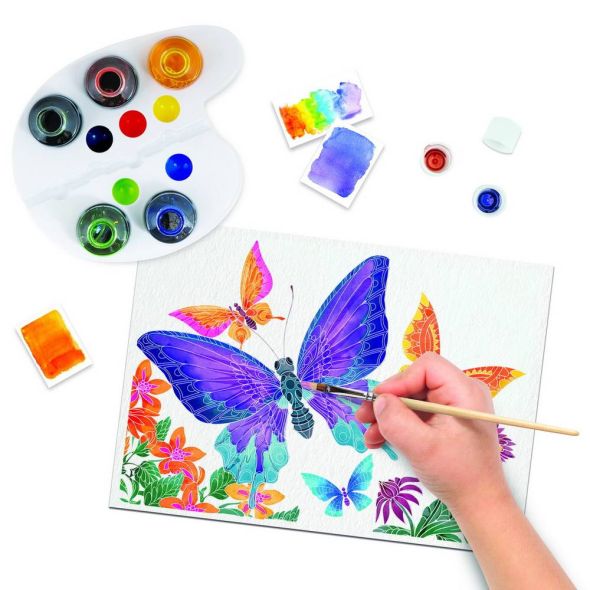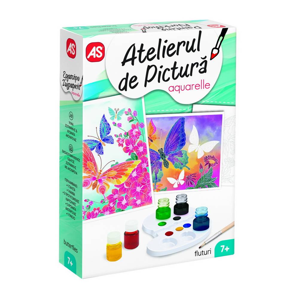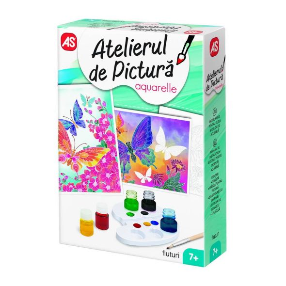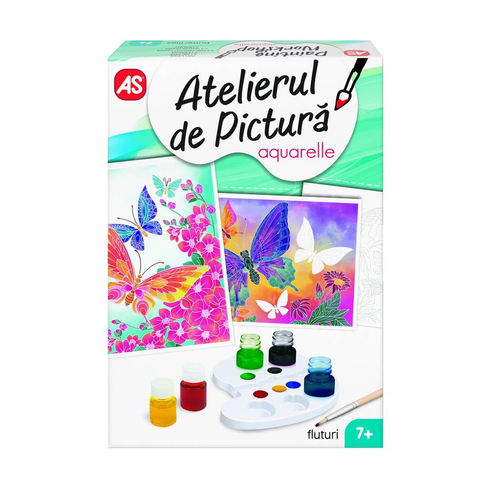 Cu Atelierul de Pictura Aquarelle Mini, te poti simti un adevarat artist! Setul ofera posibilitatea de a patrunde in lumea artei, de a petrece placut si productiv timpul liber. Setul este perfect pentru oricine, indiferent de varsta, nivel de experienta sau calificare. Acesta poate fi utilizat atat acasa, cat si la scoala. Uneltele si vopselele din set, va vor insoti in minunata lume a culorilor, iar creatiile finale pe panzele din set vor constitui un cadou minunat pentru cei dragi sau un element de decor unic! Tematica setului Fluturi. Setul contine 1 paleta, 5 culori de acuarele, 3 cartonase pentru desen, 1 panza, 1 pensula si 1 manual de instructiuni. Valorile dezvoltate Indemanarea, Concentrarea, Rabdarea, Coordonarea mana-ochi, Creativitatea, Atentia. Varsta recomandata 7+.
