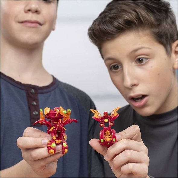 Duceti lupta la alt nivel cu setul Baku-Echipament pentru Bakugani! Incepeti o noua colectie de Bakugani sau completati-va colectia cu un Bakugan suprem exclusiv, un Baku-Echipament, un Bakugan suprem, doi Bakugani, opt Bakucore-uri si cartonasele de colectie cu personaje si cartonasele cu abilitati! Cu tot ce aveti nevoie inclus, patrundeti in actiune direct din cutie. Eliberati puterea Bakuganului din Alianta Blindata rostogolindu-l peste Bakucore-urile incluse pentru Baku-actiunea de deschidere brusca sau folositi Bakuganul Suprem pentru o transformare printr-o saritura de deschidere epica! Amplificati puterea de lupa aruncand Baku-Echipamentul deasupra Bakuganului suprem exclusiv si urmariti-l cum se transforma! Sunteti gata de lupta?