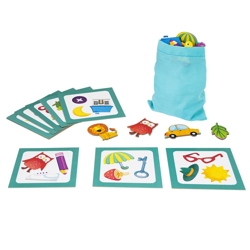 Joc de societate Bu-Hu-Hu Ghice ce e! Jocul include 9 carti cu doua fete, 27 de elemente din carton, 36 jetoane de carton, punga de panza.