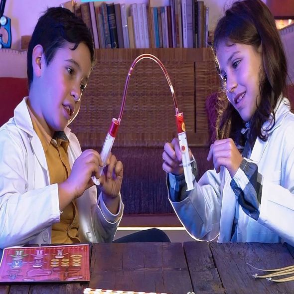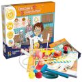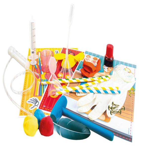 Joc educativ descopera corpul uman. Cu acest joc, patrunde in fascinanta lume a corpului uman si descopera cum functioneaza diferitele sale sisteme. Construieste un schelet articulat, simuleaza functionarea plamanilor, invata despre muschi, sistemul digestiv si circulator, si multe altele. Exploreaza 12 activitati stiintifice distractive si interactive care iti vor starni curiozitatea si cunostintele despre corpul uman. Continut kit seringi, manusa, plastiline colorate, tuburi din plastic, baloane, ciocanel reflex, colorant rosu, pahare gradate cu capac, palnii, ata de pescuit, pini de arhivare, paie, pipeta de patiserie, pana, cartonas schelet si mana, cartonas corpul uman, cutie corpul uman, stickere cu corpul uman, cartonas metru.
