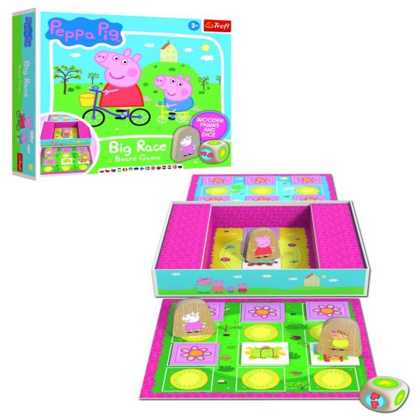 Marea cursa este un joc de societate vesel dedicat celor mai mici copii. Pregateste-te pentru o cursa personajul favorit din serialul Peppa Pig-ul! In acest joc vei concura Impreuna cu alti jucatori pentru a ajunge la linia de sosire. Pe parcurs se ascund si surprize. Treceti podul din mijloc, luand In considerare ca aveti putin spatiu. Ajungi la destinatie cat mai repede posibil si distreaza-te In Marea cursa a lui Peppa Pig. Continut 2 placi, 16 placi, 3 pioni de lemn, zaruri de lemn, instructiuni.