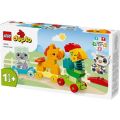 Cunosti un copilas care adora joaca creativa si jucarii cu tematica naturii? Introdu-i pe copiii mici in varsta de 18 luni sau mai mari in joaca de potrivire a culorilor cu setul LEGO DUPLO Tren cu animale (10412). Aceasta jucarie educationala pentru prescolari contine 4 animale adorabile de construit - un cocos, un cal, un miel si o vaca - care ii transporta pe micuti intr-o calatorie de joaca pe roluri distractiva. Copiii mici isi dezvolta abilitatile de rezolvare a problemelor in timp ce urmaresc cartonasele si construiesc animalele pe care le potrivesc cu vagoanele trenului in functie culori. Acest vehicul de jucarie mai include 2 caramizi extra care ofera copiilor ocazia sa isi exprime creativitatea in timp ce construiesc si reconstruiesc animalele in feluri noi, inventate de ei. Functiile jucause, cum ar fi gatul flexibil al cocosului si vagoanele de tren care se pot conecta, dezvolta abilitatile motorii ale copiilor. Jucariile LEGO DUPLO cu animale pentru prescolari pun distractia fara limite, exprimarea de sine si explorarea in mainile micutilor, impartasind alaturi de parintii momente pretioase de dezvoltare.