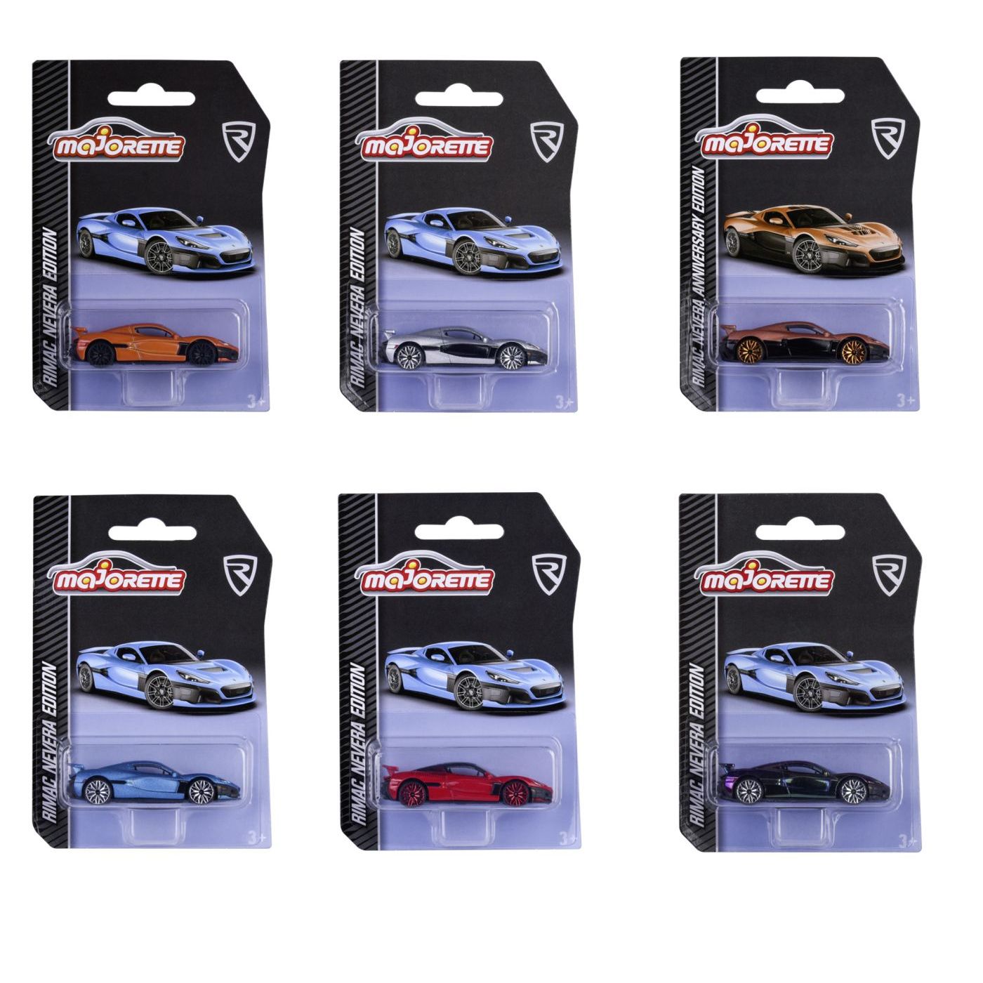 Masina Majorette Rimac Nevera Edition - selectie aleatorie a 6 masini de jucarie cu roata libera si suspensie, de la 3 ani, 7,5 cm.