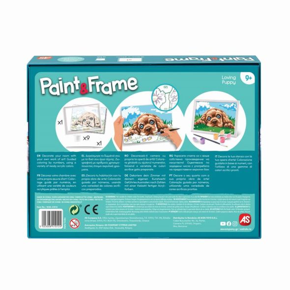 Decoreaza-ti camera cu propria ta opera de arta! Pictura ghidata dupa numere folosind o varietate de culori acrilice.Cu kiturile Paint & Frame, bazate pe tehnica de pictare dupa numere, puteti invata sa colorati diferitele imagini in detaliu, imbunatatindu-va astfel talentul artistic si dezvoltandu-va abilitatile motorii fine. Rezultatul final va va stimula sentimentul de bucurie, mandrie si satisfactie!? Fii mandru de capodopera ta! Operele de arta colorate plasate in rame va vor decora perfect camera.Contine9 culori acrilice, o paleta, 1 card preimprimat, o pensula, o rama,1 manual.Varsta recomandata 9 ani+.
