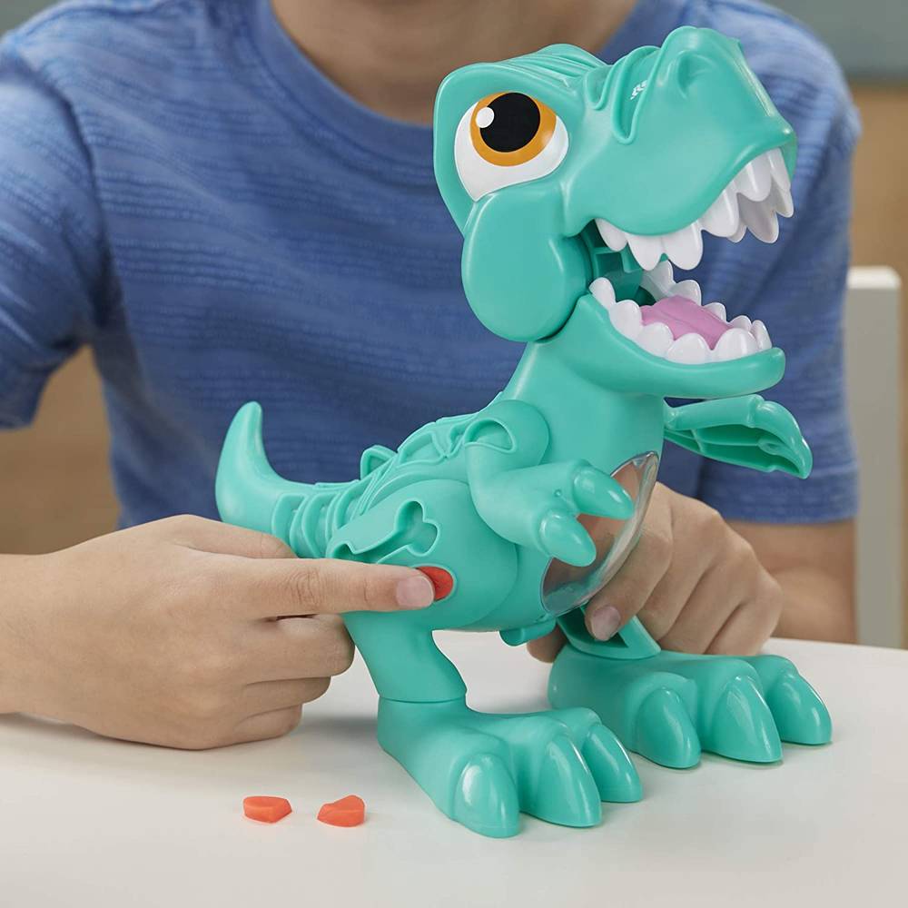 Atat de multe moduri de a deveni creativi cu aceasta jucarie Play-Doh T-Rex pentru copii de 3 ani si peste! Imaginati-va aventuri preistorice din nou si din nou cu figura dinozaurului verde, prietenul pterodactil si 3 oua Play-Doh umplute cu compus de modelare non-toxic. Prietenul pterodactil de jucarie face mici jumatati de oua pentru cuib. Crunchin 'T-Rex este gata sa se descompuna! Puneti ceva compus Play-Doh in gura jucariei Tyrannosaurus Rex pentru a-l face sa muste si sa scoata sunete.