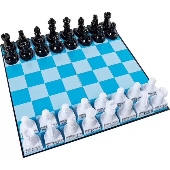 Învatarea jocului de sah este usoara cu piese marcate. Fiecare piesa include numele si directia in care se poate deplasa.Ideal pentru 2 jucatori! Recomandat pentru varsta de 6 ani si peste.Contine Tabla de sah , 32 de piese de sah, instructiuni.
