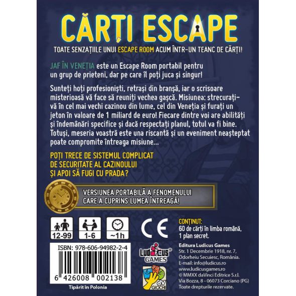 Jocul Jaf in Venetia este un Escape Room prtabil pentru un grup de prieteni, dar pe care il poti juca si singur!