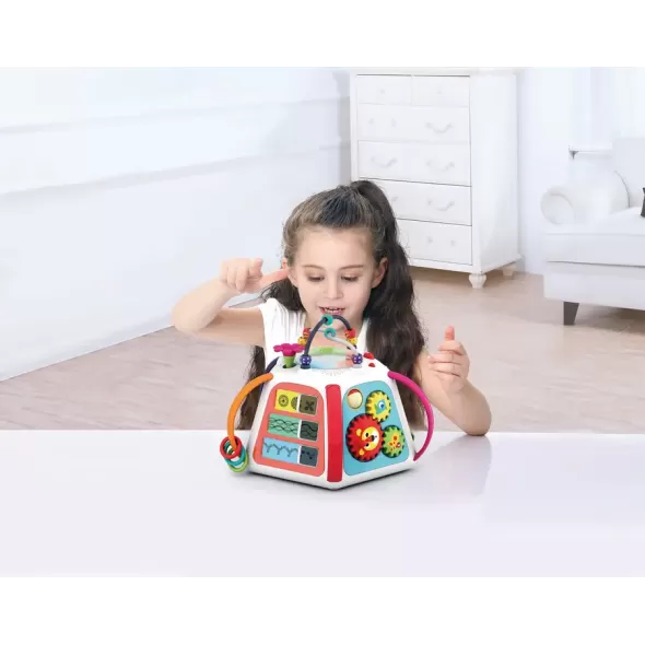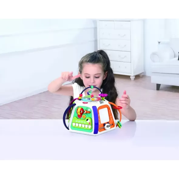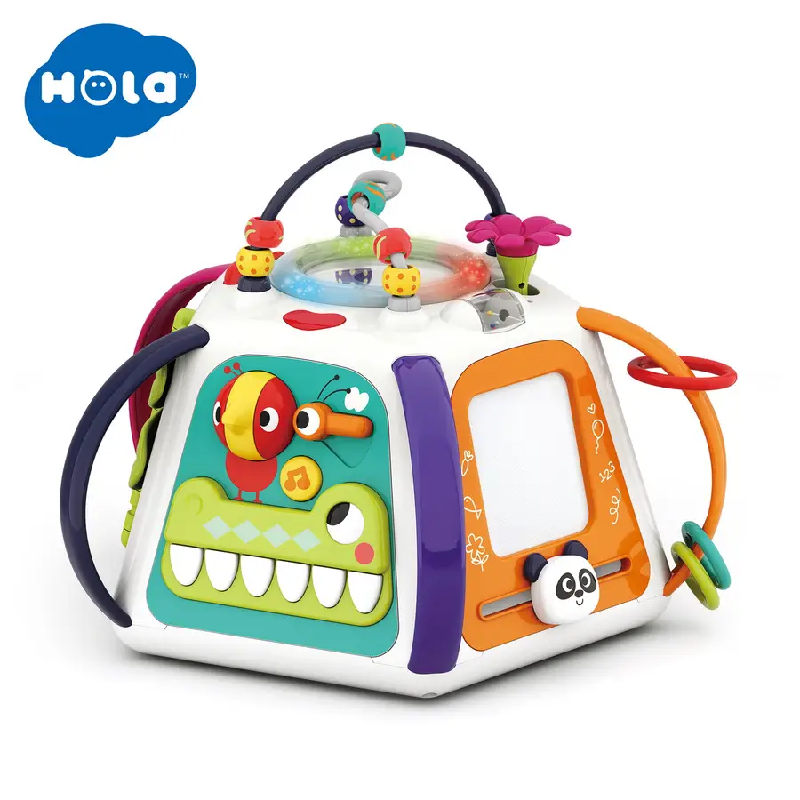 Copilul dumneavoastra poate sa se joace si sa invete alaturi de piramida cu activitati de la HolaToys. Acesta va oferi copilului dumneavoastra momente pline de distractie si veselie, iar dumneavoastra, privindu-l, zambete nemasurabile. Fiecare din fetele jucariei contin activitati diferite. Sunetele si luminile emise sunt menite sa dezvolte perceptia vizuala si auditiva si coordonarea dintre maini si ochi a copilului dumneavoastra. Formele speciale si culorile vii incurajeaza copilul sa exerseze si sa se joace stimuland astfel dezvoltarea individuala. Functioneaza cu 3 baterii AA de 1.5v care sunt incluse.