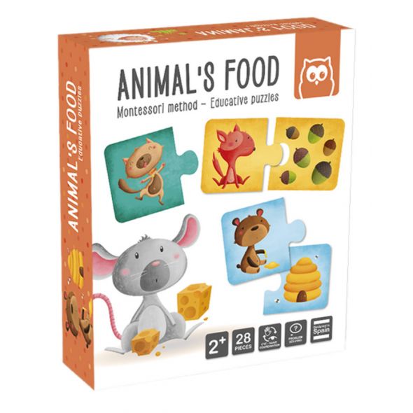 Pe baza metodei Montessori, acest puzzle educativ va spori dezvoltarea capacitatii copiilor de a asocia fiecare animal cu mancarea preferata.