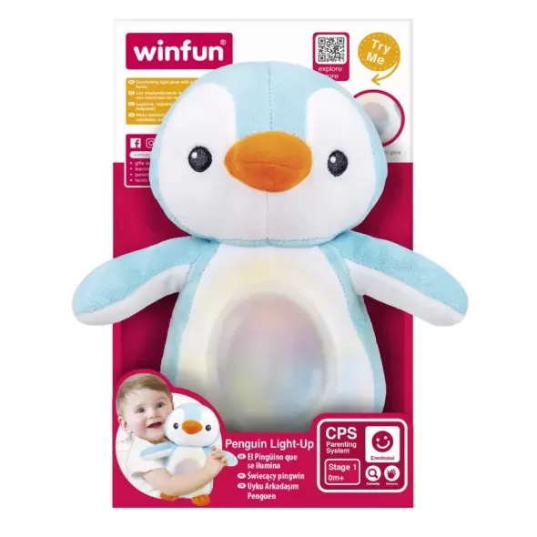 Jucaria de plus pinguin are un efect calmant asupra copiilor, gratie melodiilor linistitoare si luminilor subtile. Confectionata dintr-un material extrem de moale si placut la atingere, aceasta jucarie ofera o senzatie reconfortanta si placuta in timpul jocului. Reda 4 melodii linistitoare si reproduce sunetele naturii, iar pornirea/oprirea este simpla, putand fi realizata de catre copilas prin apasarea burticii pinguinului. Pentru controlul parental, este prevazut cu un comutator on/off si control al volumului. Dupa aproximativ 2.5 minute, jucaria se va opri automat, dar poate fi dezactivata mai devreme atingand din nou burtica (sau reactivata prin apasarea acesteia). Ajuta la crearea unei rutine reconfortante si relaxante pentru culcare/somnul de pranz, contribuind la stabilirea unui mediu propice pentru odihna si relaxare. Reda melodii de leagan, aducand o nota de liniste si confort in momentele de somn sau relaxare. Recomandata incepand de la nastere (0 luni +), aceasta jucarie este perfecta pentru a fi introdusa in viata micutilor inca de la varste fragede, contribuind la dezvoltarea lor armonioasa si oferindu-le momente de joaca distractive si educative. O alegere excelenta pentru parintii care cauta o jucarie sigura, captivanta si potrivita pentru bebelusii lor in crestere.