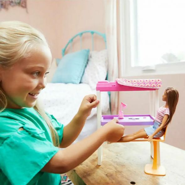 Cu setul Mobila Barbie fiecare camera v-a avea propriul stil pentru a crea scenarii de joc interesante. Mobila are detalii fantastice, datorita designului sau modern si culorilor luminoase.