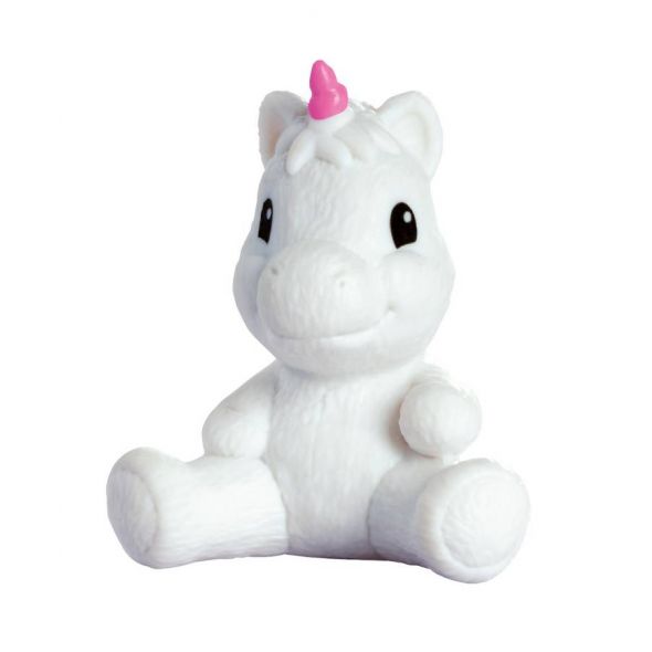 Steffi se pregateste sa il adoarma pe bebelusul ei dragalas, in patul lui cu elemente fluorescente. Setul include si 12 accesorii, inaltime papausa 29cm. Steffi pune copilul in pat, care poarta pijamale dragute si poate imbratisa unicornul sau. Patutul este dotat cu o banda de stele ce stralucesc in intuneric si un baldachin ce se poate inchide.