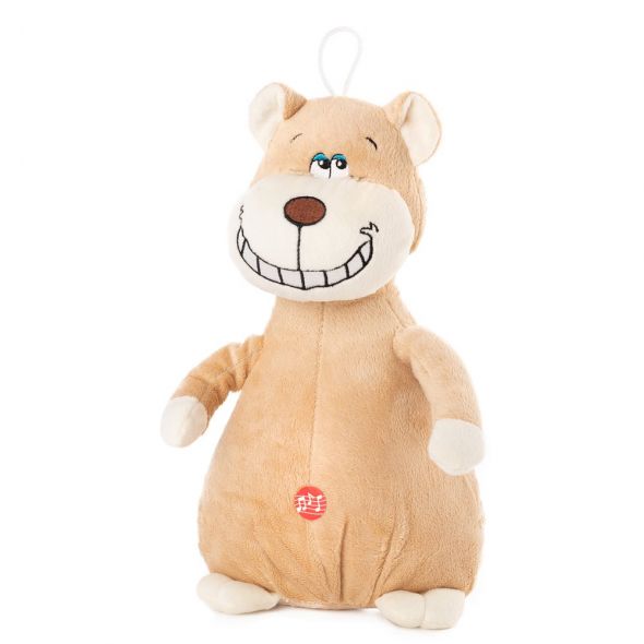 Prevazut cu un dispozitiv electronic care prin apasare scoate sunete specifice caraghioase.